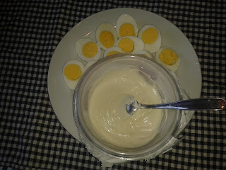 | Uova sode, salsa aglio - Boiled eggs, garlic sauce |